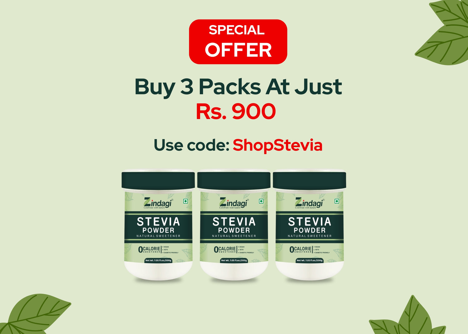 Zindagi Stevia is a zero-calorie natural sweetener made from the purest extract of Stevia leaves (Stevia rebaudiana)—Reb-A 99%. It’s 200–300 times sweeter than sugar, with no bitterness or calories. Perfect for diabetics, weight-watchers and anyone switching to a healthier lifestyle. Our products are certified for quality, ensuring you get the pure & best stevia.